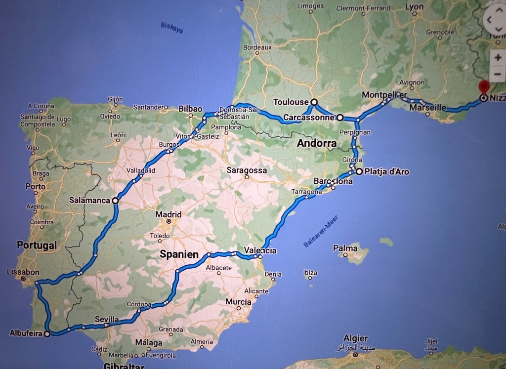 Das erste Etappenziel ist Plata d’Aro. Danach geht es dann nach einem weiteren Zwischenstopp direkt an die Algarve.
