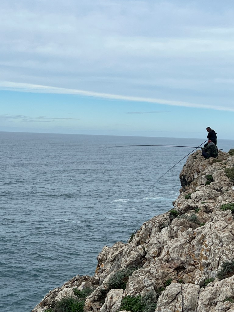 Hier finden sich etliche dieser verrückten Angler, die auf den Klippen stehen, 50 / 60 Meter über dem Meer und dort angeln.
